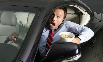 - Comer en el coche= 200 euros de multa + 2 puntos del carnet.